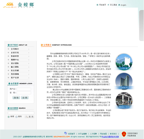 蘇州金螳螂構(gòu)筑裝飾股份有限公司創(chuàng)建于1993年1月,是一家以室內(nèi)裝飾為主體,融幕墻、家具、景觀、藝術(shù)品、機(jī)電裝備安裝、智能、廣告等為一體的專業(yè)扮裝飾團(tuán)體。