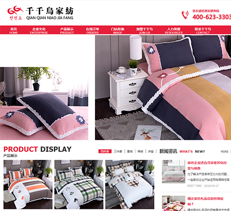 家用紡織品,威海市環(huán)翠區(qū)網(wǎng)站建設公司,做網(wǎng)站優(yōu)化關鍵詞排名SEO,營銷型,手機網(wǎng)站建設,響應式,品牌型,電商/門戶,家用紡織品,威海市環(huán)翠區(qū)外貿(mào)型網(wǎng)站建設. 威海千千鳥家紡有限公司,是國內(nèi)最早涉足韓國家用紡織品,并迅速形成品牌優(yōu)勢的家紡企業(yè),是中國現(xiàn)代特色家紡業(yè)的主要倡導者。