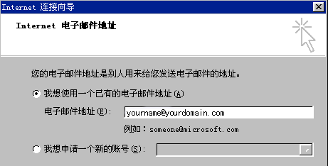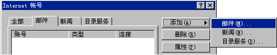 單擊"添加"按鈕,從彈出的菜單中選擇"郵件"選項(xiàng)將彈出Internet連接向?qū)В?