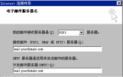在接收郵件(POP3,IMAP或HTTP)服務(wù)器(I)"中填寫您接收郵件的服務(wù)器地址,例如:mail.yourdomain.com;