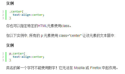 在以下的例子中,所有擁有 center 類的 HTML 元素均為居中。
