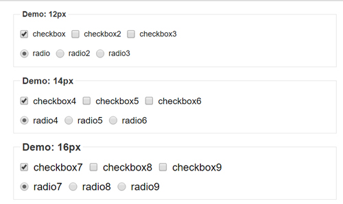 .form { font: 14px/18px Arial, Helvetica, sans-serif; } .form input, .form label { vertical-align: middle; } .form label { margin-right: 6px; } .form_checkbox, .form_radio { margin: 0 3px 0 0;/*與右側(cè)文字的間距*/ padding: 0; width: 13px; height: 13px; /*ie7 ie6 根據(jù)不同的 font-size 設(shè)置不同的值*/ *vertical-align: 1px; }