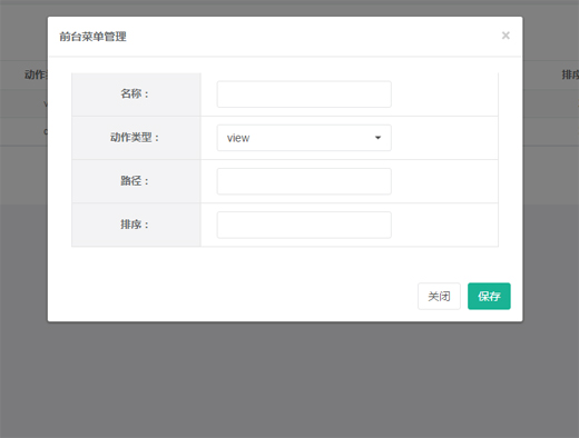 aria-hidden="true" id="btnCancel"> × </button> <h4 class="modal-title" id="myModalLabel"> 前臺(tái)菜單管理 </h4> </div> <div class="modal-body"> <div> <table width="100%" border="0" class="userCon_2"> <tr> <th width="30%">名稱:</th> <td width="70%"> <input type="text" name="Name" class="form-control"